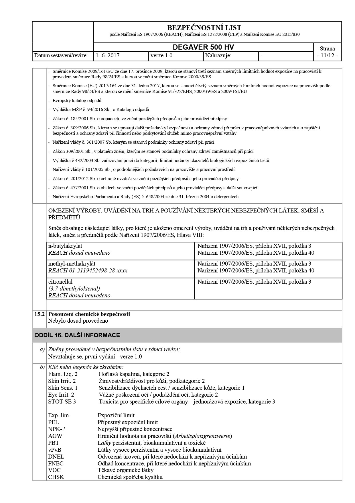 BL DEGAVER 500 HV CZ CLP 2017 (CZ)