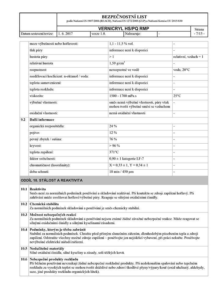 BL VERNICRYL HS-PQ RMP CZ CLP 2017 (CZ) Strona 7Aby wyświetlić zawartość, należy posiadać Flash Player wersji 8 lub nowszą. Obsługa Javascript musi być włączona. Aby pobrać najnowszą wersję programu Flash Player