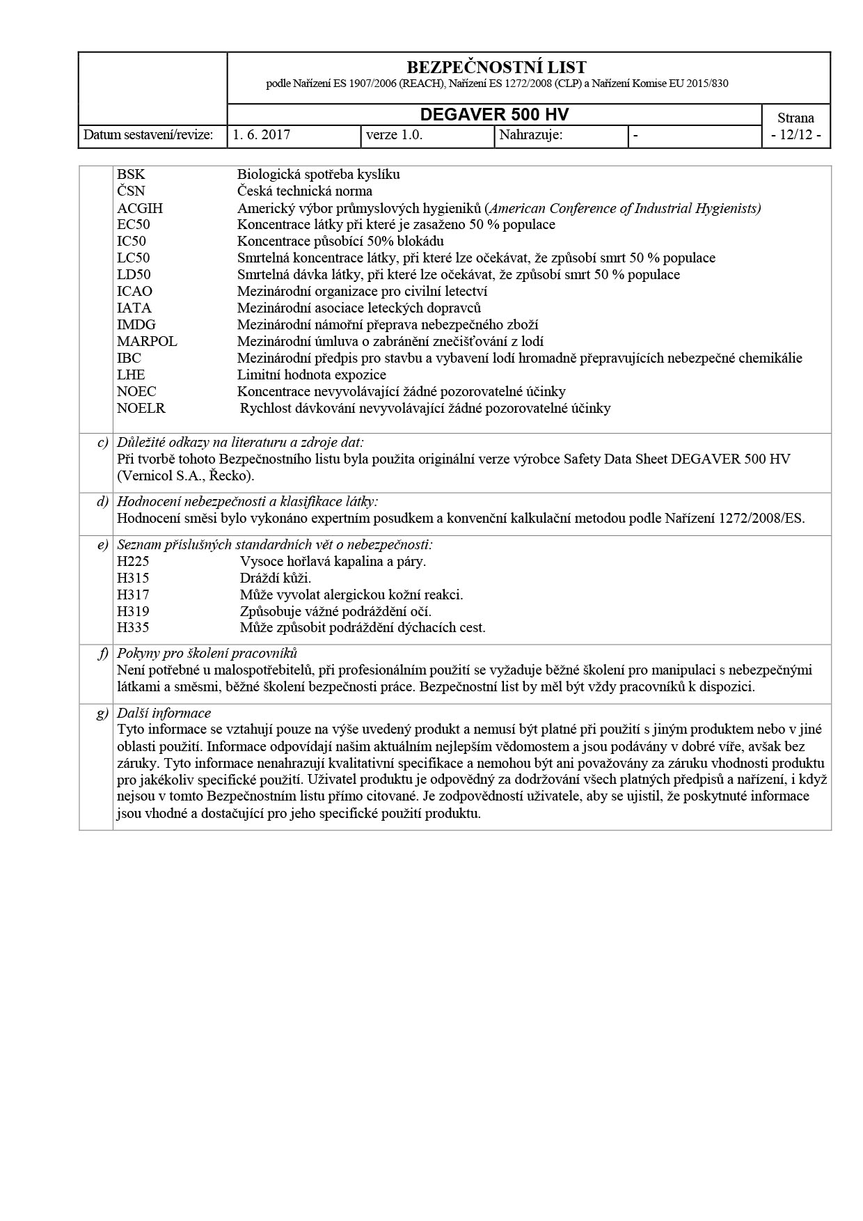 BL DEGAVER 500 HV CZ CLP 2017 (CZ)