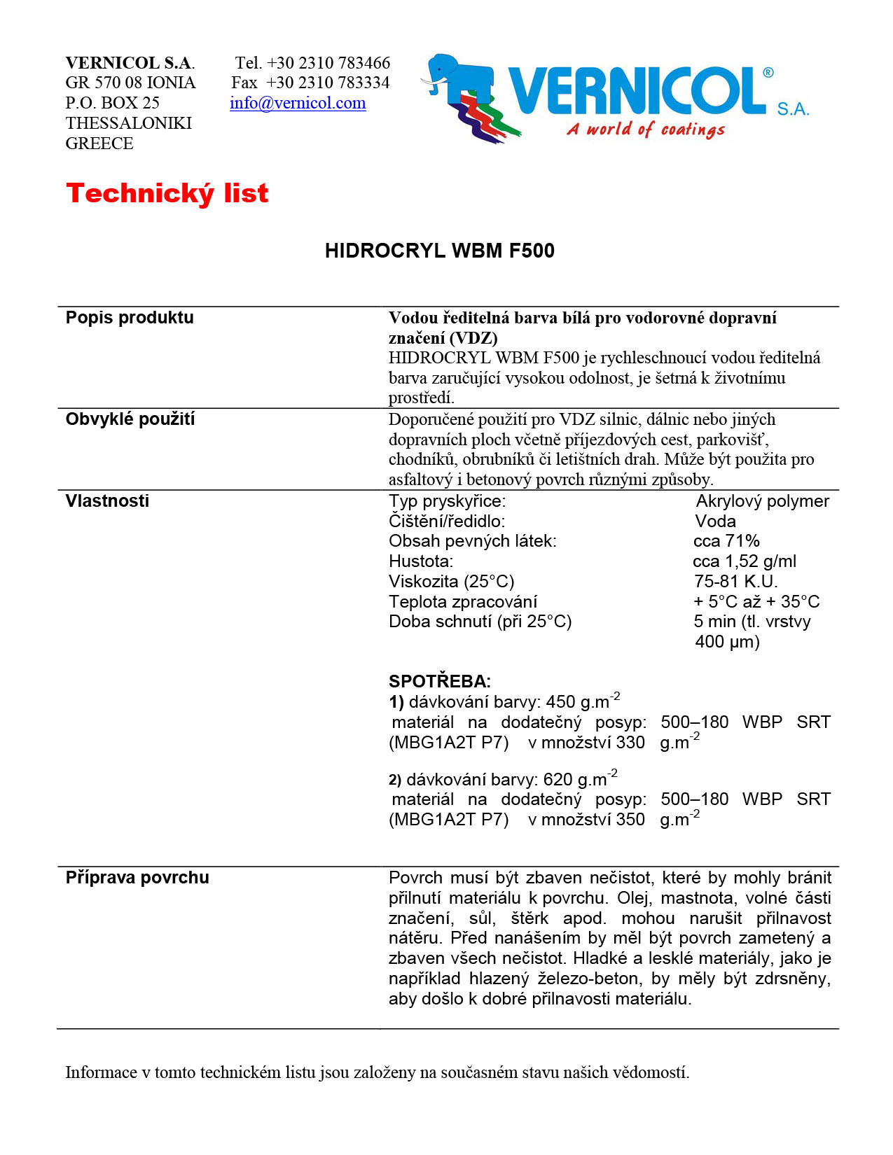 HIDROCRYL WBM F500 (CZ) Strona 1