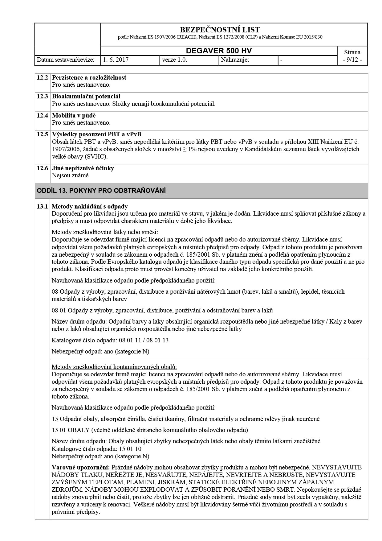 BL DEGAVER 500 HV CZ CLP 2017 (CZ)