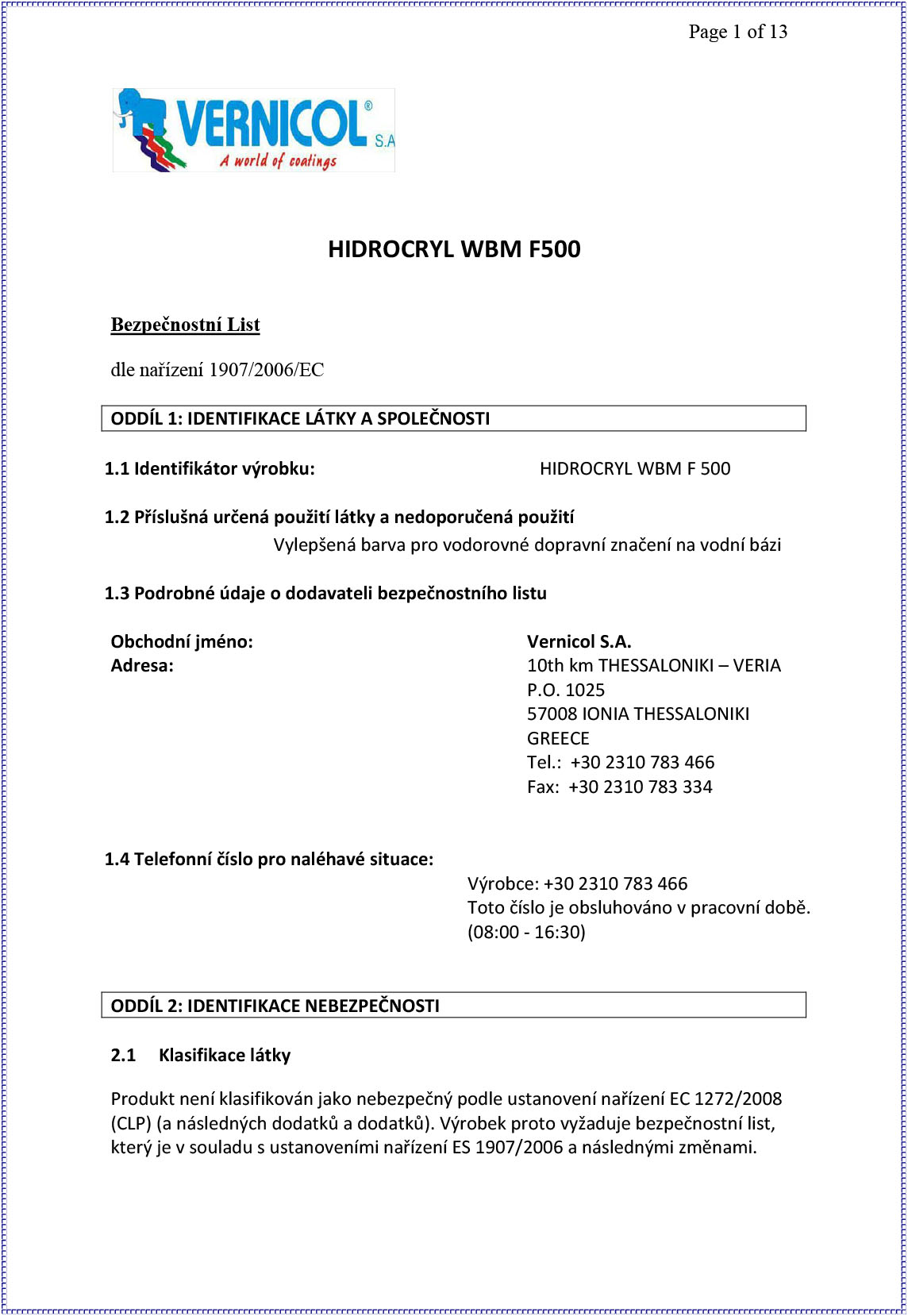 This is the HTML version of BL HIDROCRYL WBM F500 (CZ) Page 1